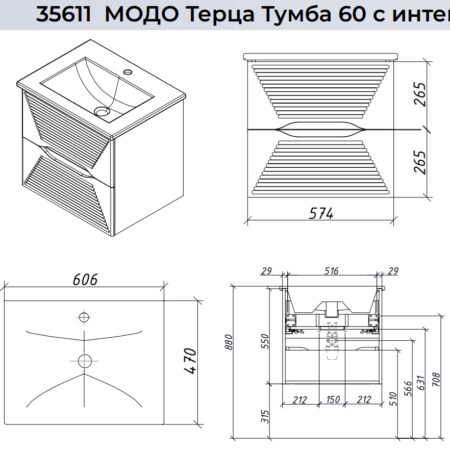 Тумба подвесная Caprigo Modo Terza 60 35611-SF024