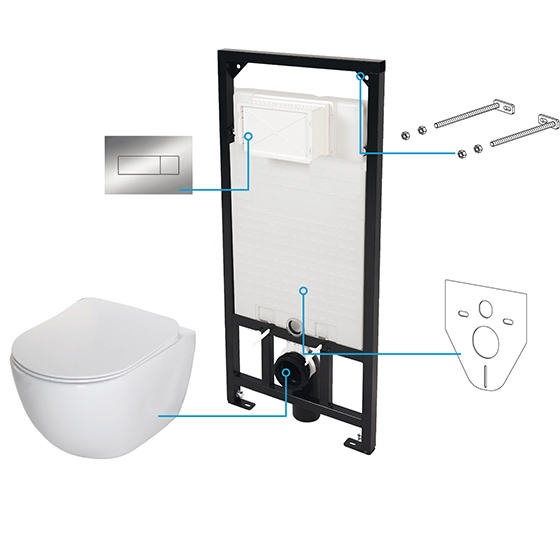 Интернет-магазин ООО «Стелавис» представляет унитазный комплект модели Deante Peonia Zero, состоящий из шести изделий, данный продукт отлично дополнит интерьер ванной комнаты или санузла. Сантехника Deante производится в Польше и отличается высоким качеством продукции, ее долговечностью, эстетичностью и низкой стоимостью. Польская сантехника давно зарекомендовала себя на рынке оборудования для ванных комнат и соответствует европейским стандартам качества. В комплект входит чаша унитаза, крышка с механизмом плавного закрытия, настенная кнопка смыва, рама для крепления, смывной бачок и сопутствующие детали для крепления, а также отвода и подвода воды. Белоснежная керамическая поверхность легко очищается и не потеряет своего вида долгое время. Хромированная настенная двухрежимная кнопка смыва не нарушит гармонии интерьера. Бачок унитаза цельный и имеет возможность регулировки объема подачи воды. Представленный продукт можно купить в Минске по самой низкой цене.