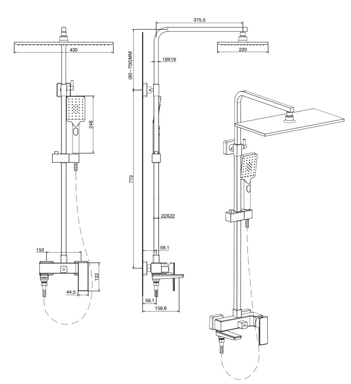 Душевые системы настенные