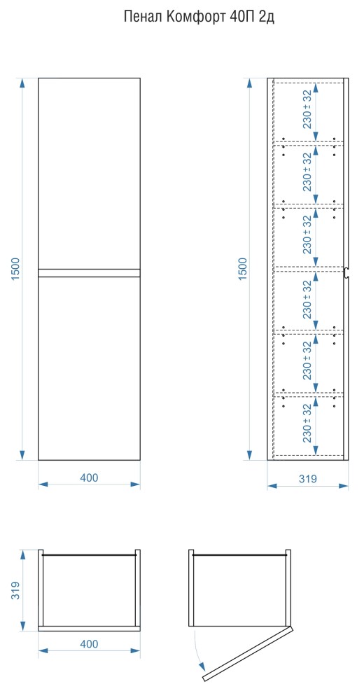 Пенал подвесной Vela Мира 40П (двери) RS623485 — Интернет магазин сантехники