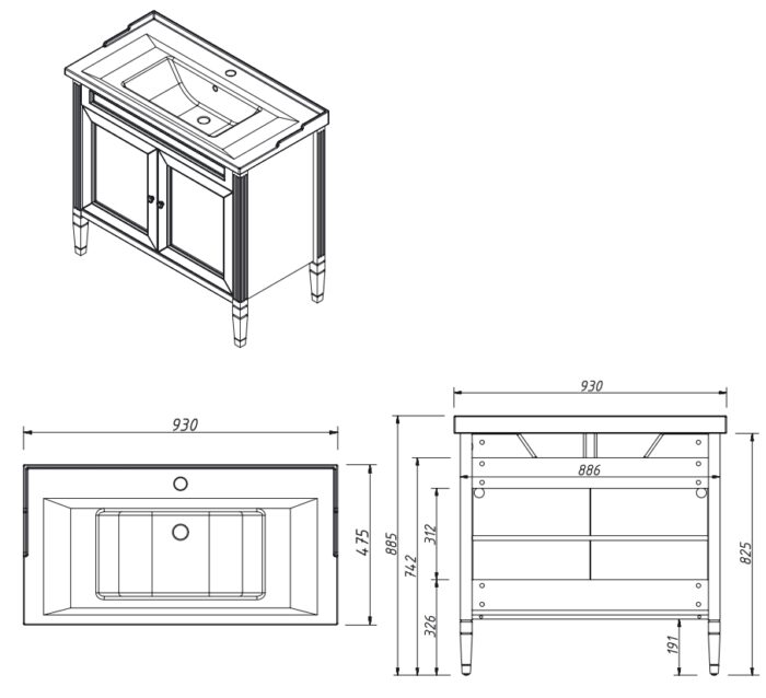 Тумба напольная Caprigo Albion Concept 90 34013-SF019 — Интернет магазин сантехники
