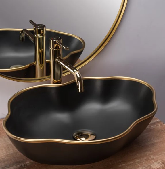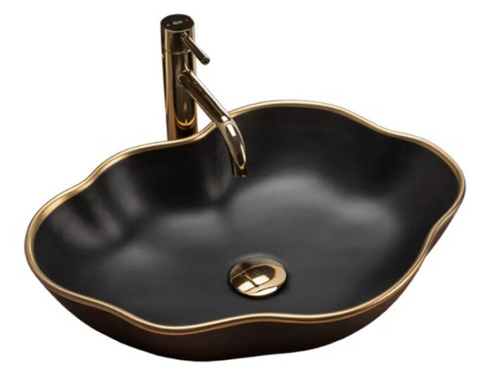 Умывальник Rea Pearl Black matt Gold Edge U0692 — Интернет магазин сантехники